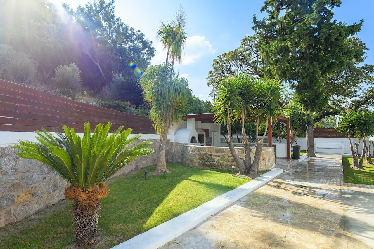 With 3 bedrooms, this villa is ideal for a romantic getaway or a family adventure in Rhodes. The 2 bedrooms feature an inviting king-size bed while the other one is furnished with 2 single beds. Each bedroom features a full-size ensuite bathroom with updated amenities. Even better than these comfortable bedrooms is the spectacular outdoor living area that allows you to enjoy the enviable Greek lifestyle.