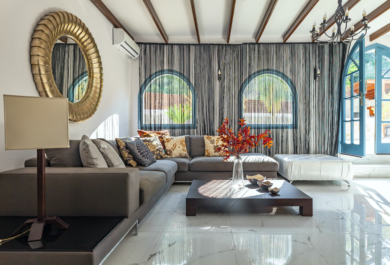 The open and airy interiors and appealing bedrooms are enough to make you fall in love with this villa, but the outside living space truly puts it over the top. The inner courtyard is perfect for spending time in the sun with a lovely marble table, BBQ grill, and outdoor shower.